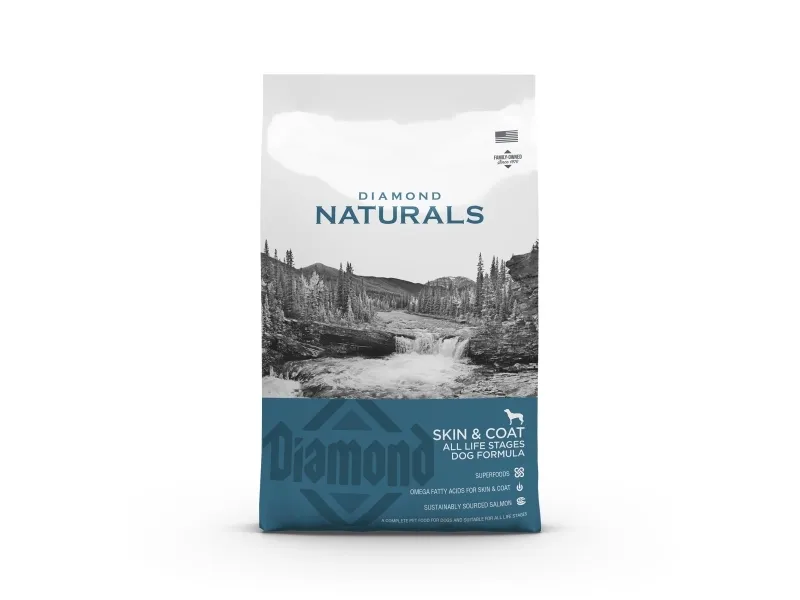 Diamond Naturals Skin & Coat er et foder til hunde i alle livsstadier. Et komplet foder med laks . Laks er hovedingrediensen , laks medvirker til at opretholde en sund hud og pels i alle livets faser. Tilsat superfoods.