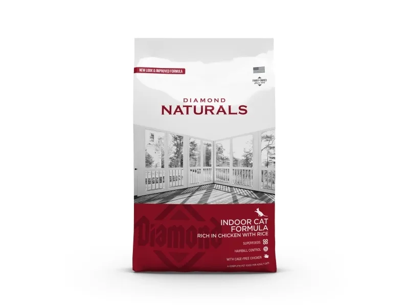 Diamond Naturals Indoor cat er til katte der lever deres liv indenfor. Rig på kylling & ris. Et komplet foder til voksne katte. Dækker fuldt ud det daglige næringsbehov hos voksne katte. Med kylling for god smag og næring. Omega-6 og omega-3 fedtsyre for en sundere hud og pels. Medvirker til at kontrollere og minimere dannelsen af hårbolde. Tilsat Superfood