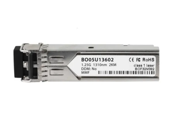 BlueOptics SFP-1G-MMF-2KM-GM-BO. SFP transceiver type: Fiber optic, Maximum data transfer rate: 1250 Mbit/s, Interface type: SFP. Housing material: Metal, Mean time between failures (MTBF): 3000000 h. Weight: 20 g. Number of products included: 1 pc(s), Package weight: 30 g