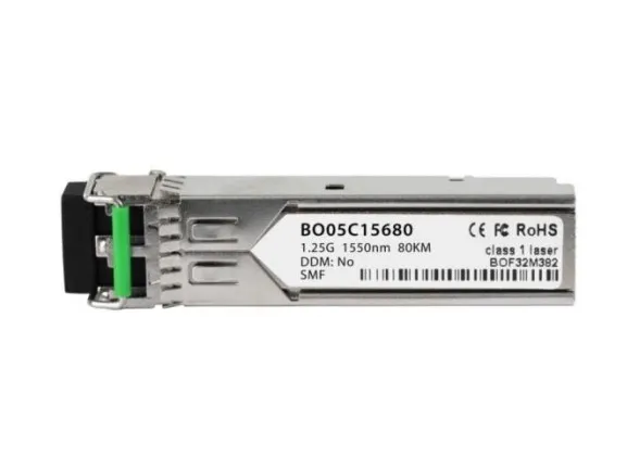 BlueOptics SFP-1G-ZX-SO-BO. SFP transceiver type: Fiber optic, Maximum data transfer rate: 1250 Mbit/s, Interface type: SFP. Housing material: Metal. Input voltage: 3.3 V. Weight: 20 g. Number of products included: 1 pc(s), Package weight: 30 g