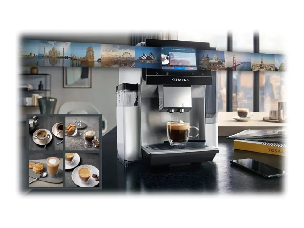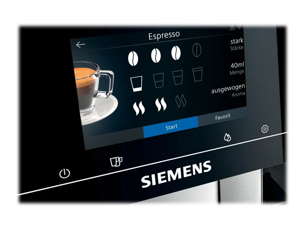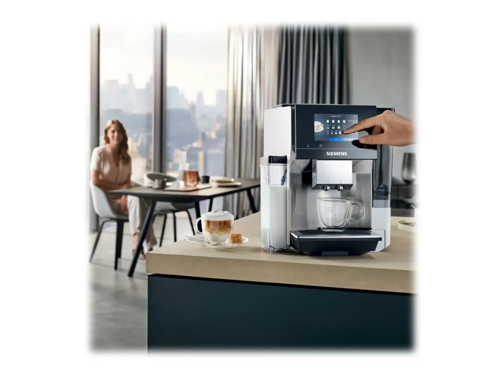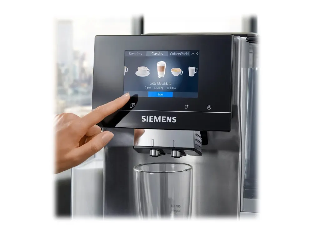Discover the EQ.700 fully automatic espresso machine and almost limitless refinements to your favorite coffee. The innovative iSelect display lets you choose from the espresso machine's menu with a simple swipe. What's more, Siemens coffeeWorld offers a diverse selection of international coffee for you to explore, while aromaSelect allows you to fine tune it to your personal taste. The EQ.700, ready for a great coffee experience?