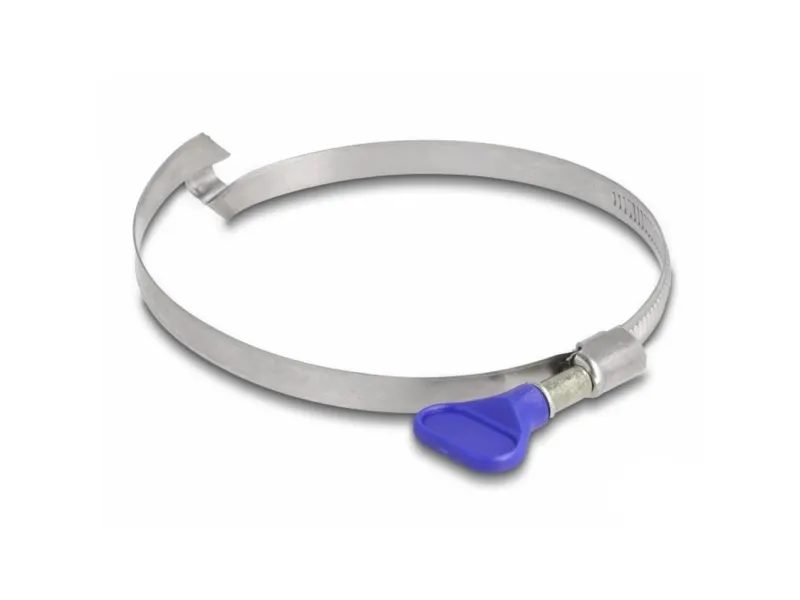 This high-quality hose clamp made of stainless steel 400 with a special bridge design by Delock is suitable for tool-free fastening of left-hand external corrugated spiral hoses with a diameter of 80 - 100 mm. The clamp provides a secure and firm hold of the hose under pressure so that it cannot slip. It is ideal for DIY, home and garden use.