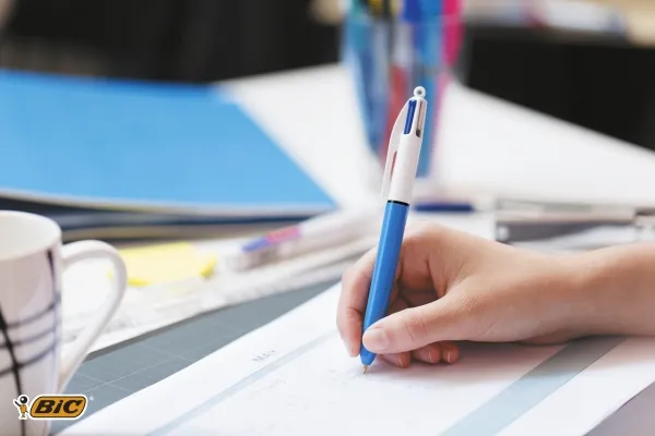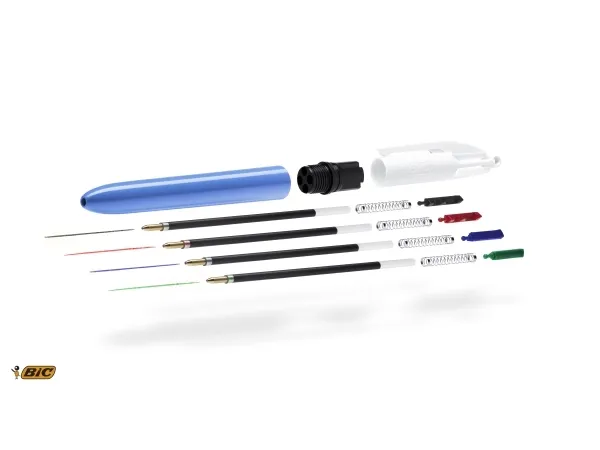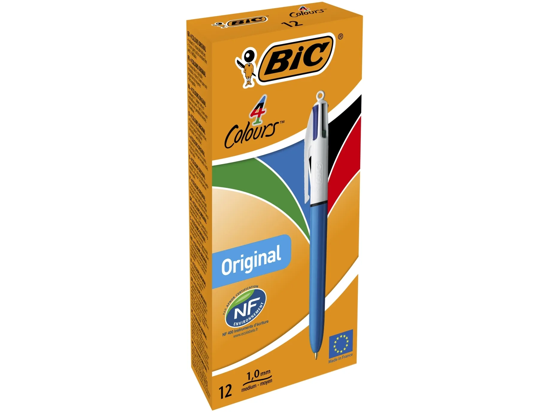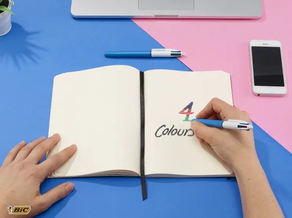 Skift farve uden af skifte kuglepenne. BIC 4 Colours kuglepennen giver dig en blå, rød, grøn og sort kuglepen i én. Perfekt til at farvekoordinere dit arbejde og skabe din egen journal. Hver af de 4 medium 1,0 mm kuglepenne yder en 2 km lang skarp og