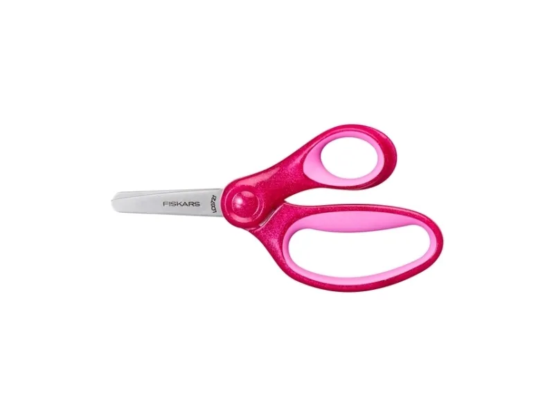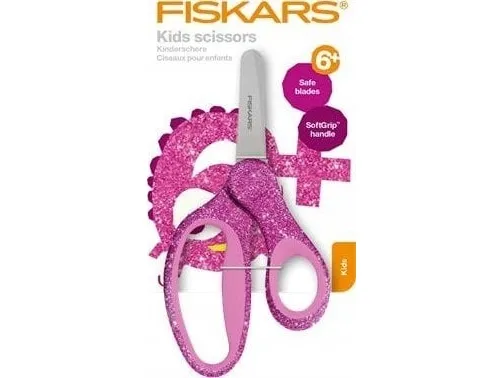 Every child is a creative genius, and the only limit to their self-expression should be their own wildest imaginations. Fiskars Glitter kids scissors are thoughtfully designed for small hands and creative minds, with safety-edge blades, a blunt tip for added safety, and a sparkle-packed handle with SoftGrip™ for improved grip and comfort. Teachers and parents love how easily the blades cut through classroom materials, as well as their innovative, safety-edge with a safer blade angle. A larger finger loop and an ergonomic thumb loop provide a natural, comfortable fit for kids’ fingers. An optimized opening angle helps kids open the blades without losing their grip for improved control. Additionally, the handle is built to be in-line with the blades to allow for better precision while cutting in the air. These scissors are ideal for children six and up, because every creative genius deserves the right scissors at the right age to express themselves. Fiskars 1064074. Target audience: Child, Cut type: Straight cut, Type: Single. Blade length: 13 cm. Quantity per pack: 1 pc(s)