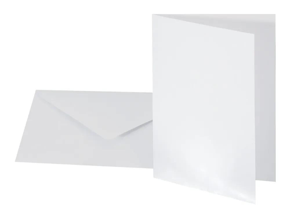 White envelope made of special paper, for all A5 folding cards and A4 papers. The gummed envelopes without a window are suitable for printing with inkjet and laser printers and copiers. Box contents: 50 C5 envelopes.