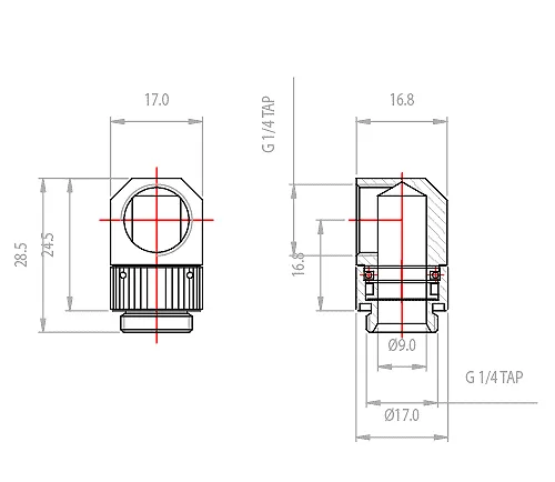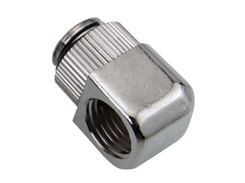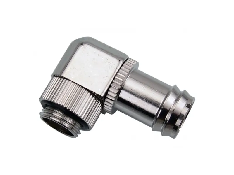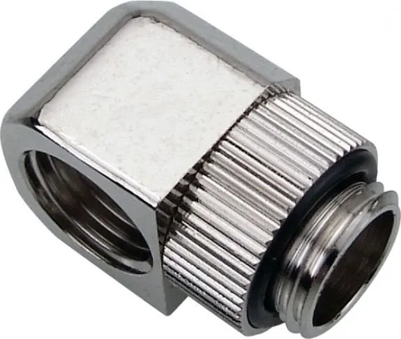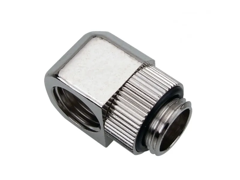 Create a swiveling 90 degree elbow bend using any Koolance G 1/4 BSPP threaded fitting. For a basic elbow fitting, the Koolance Coupling Adapter could also be used. Or for maximum adjustment, consider placing two swiveling elbow fittings together. Nickle-plated brass. Fitting not included.