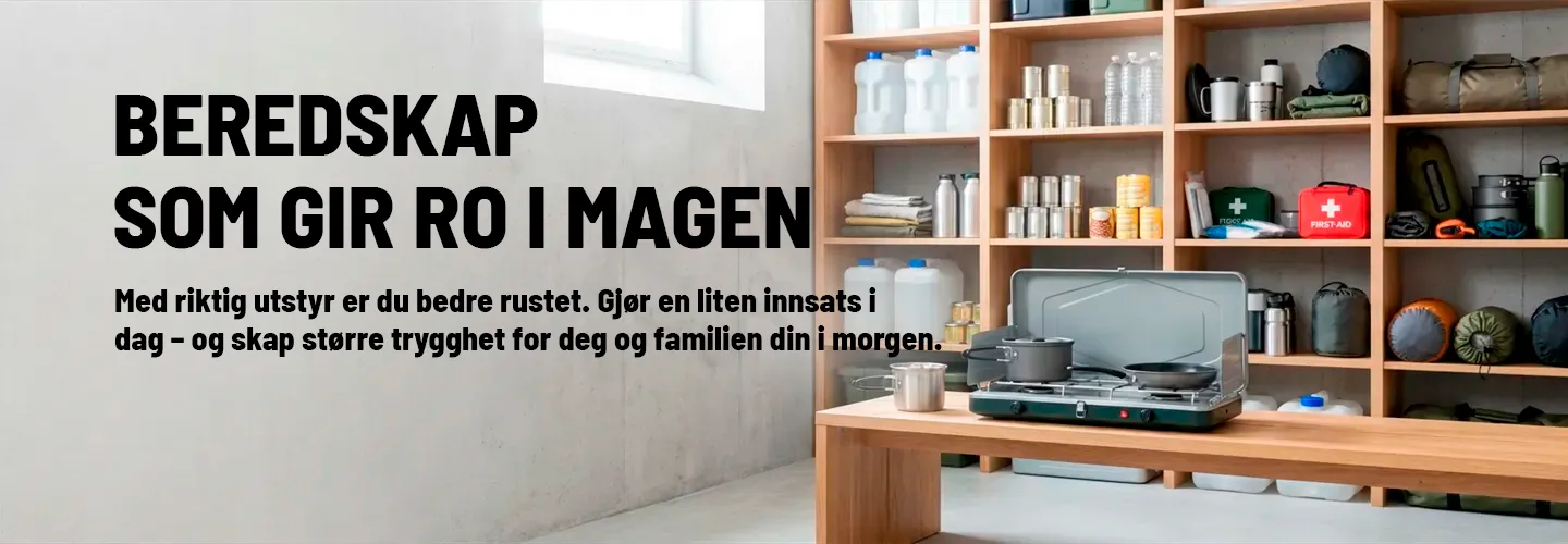 Ingen vet når en nødsituasjon vil inntreffe. Det kan være alt fra hybridkrigføring, strømbrudd, cyberangrep, forurenset drikkevann, ekstreme værhendelser eller en plutselig krise som lammer samfunnets infrastruktur. Derfor er det avgjørende å være forberedt med riktig utstyr slik at du og familien din kan takle det – uansett situasjon.