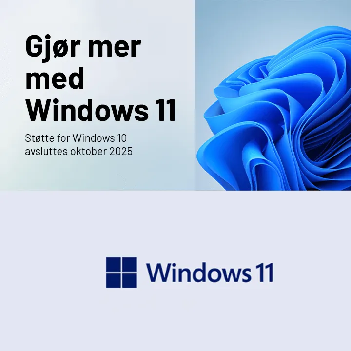 Fra og med 14. oktober 2025 vil Microsoft ikke lenger tilby gratis programvareoppdateringer, teknisk støtte eller sikkerhetsoppdateringer for Windows 10. Datamaskiner som kjører Windows 10 vil fortsatt fungere, men de vil være mer sårbare for virus. For å holde deg trygg anbefaler vi at du oppgraderer til Windows 11, som vil være en sikrere løsning og gi en forbedret og moderne brukeropplevelse.